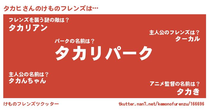 | ヒーロー風カッコイイあだ名 | 『仮面タカダー』『超時空戦士タカヒ』 |
