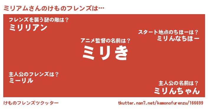 | 意味不明あだ名 | 『住所不定無職ミリアム(81歳)』 |