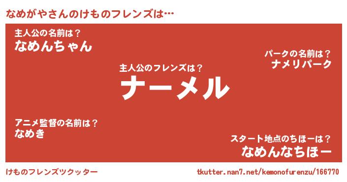 | 2回繰り返すあだ名 | 『ころころ』『なめなめ』『ななめめ』 |