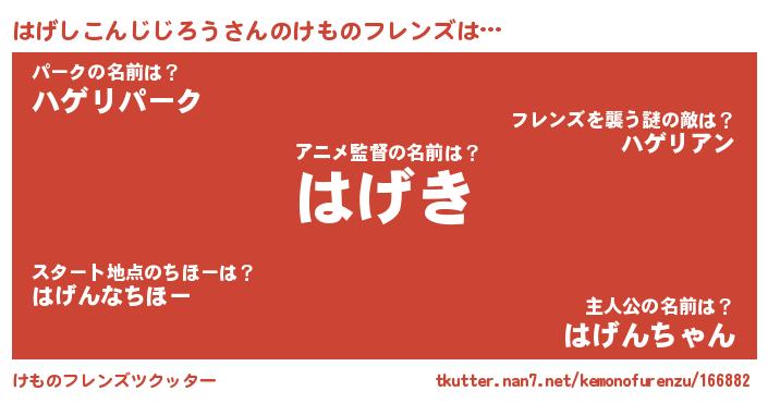 | 男性向けラノベタイトル風あだ名 | 『はげしこんじじろうの嫁は女の子じゃないと思った?』 |