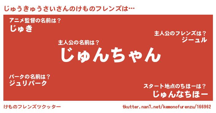 | 2回繰り返すあだ名 | 『どしどし』『じゅじゅ』『じじゅゅ』 |