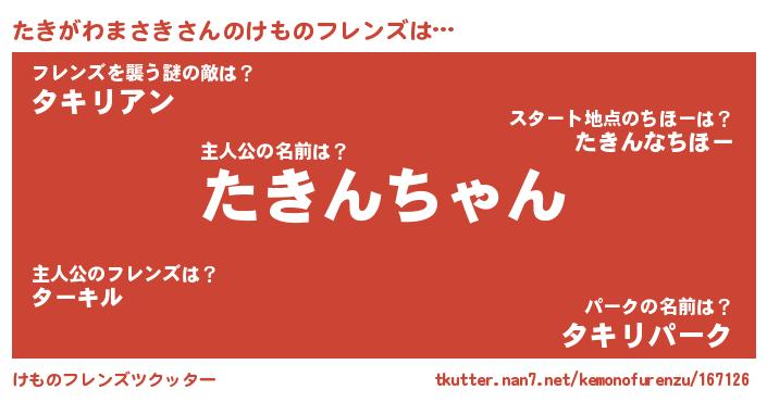 | ポケモン風あだ名 | 『タキチュウ』『ターキイ』 |