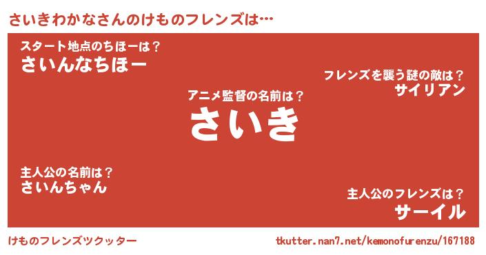 | 肩書あだ名 | 『さいきわかな班長』『さいきわかな先生』 |
