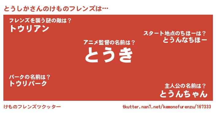 | ヒーロー風カッコイイあだ名 | 『炎刃騎士トウ』『天空の使者とうしか』 |