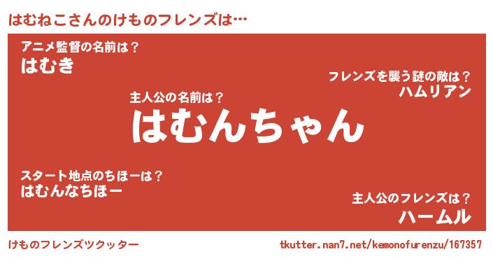 | ポケモン風あだ名 | 『ハムチュウ』『ヒハムネコ』 |