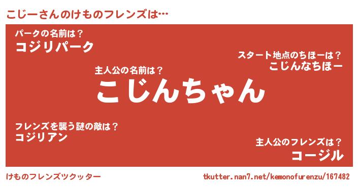 | 男性向けラノベタイトル風あだ名 | 『この素晴らしい世界にこじーを!』 |