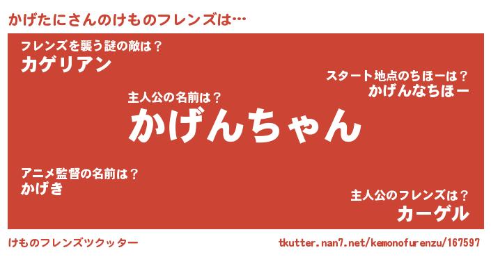 | ファンタジー風あだ名 | 『カゲフェル』『カークカゲラー』 |