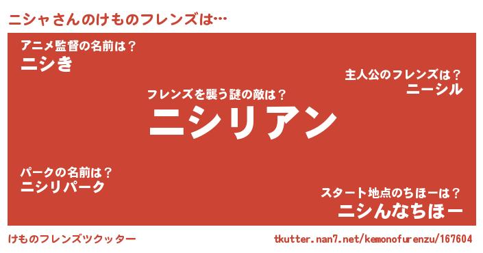 | ポケモン風あだ名 | 『ニシゴンZ』『ニックウザ』 |