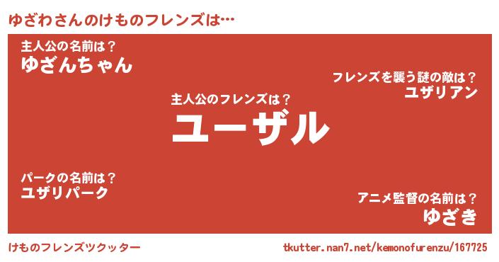 | ファンタジー風あだ名 | 『ユザディッシュ』『ユリユザヴァット』 |