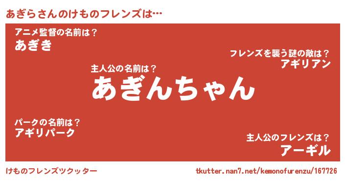 | 意味不明あだ名 | 『ペロリンあぎら』『永久保存あぎら』 |