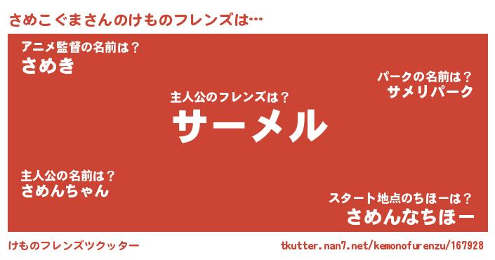 | ヘコむあだ名 | 『さめこぐま(遠い目)』『さめお』 |