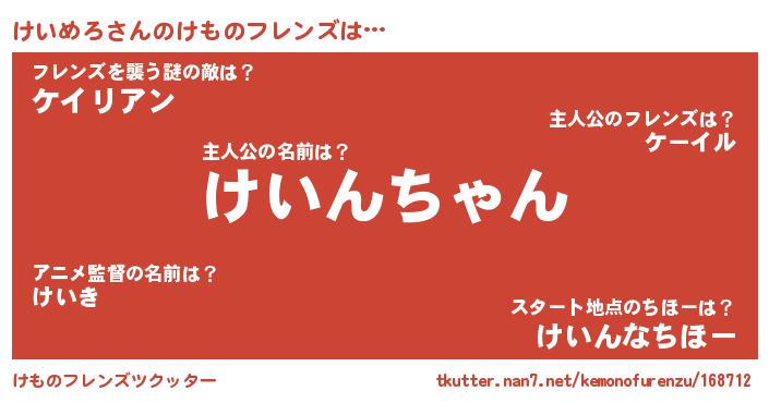 | 意味不明あだ名 | 『ペロリンけいめろ』『永久保存けいめろ』 |
