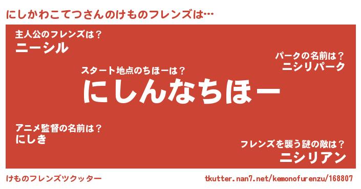 | 意味不明あだ名 | 『にしかわこてつフォーエバー』 |