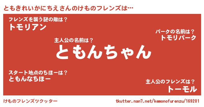 | 男性向けラノベタイトル風あだ名 | 『ともきれいかにちえ~年齢イコール彼女いない歴の魔法使い~』 |