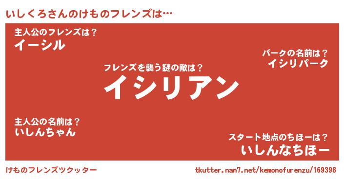 | 男性向けラノベタイトル風あだ名 | 『おまえをオタクにしてやるから、俺をいしくろにしてくれ! 』 |