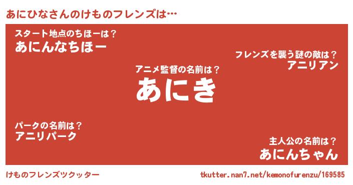 | ポケモン風あだ名 | 『ヒアニヒナ』『アニヒダネ』 |