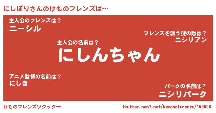| ポケモン風あだ名 | 『ニシチュウ』『メロニッシ』 |