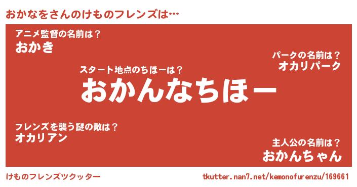 | 2回繰り返すあだ名 | 『おおかか』『とぷとぷ』『ざわざわ』 |