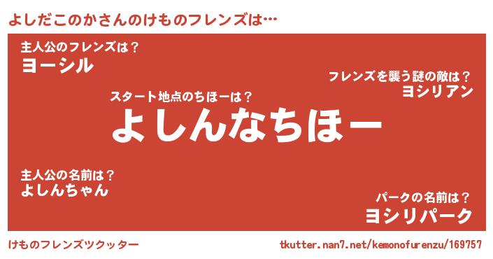 | 肩書あだ名 | 『よしだこのか艦長』『よしだこのか校長』 |