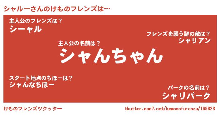 | 意味不明あだ名 | 『ペロリンシャルー』『永久保存シャルー』 |