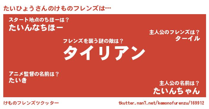 | 男性向けラノベタイトル風あだ名 | 『うちのたいひょうが世界を掌握している!』 |