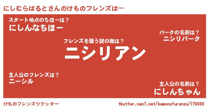 | 肩書あだ名 | 『にしむらはると助手』 |