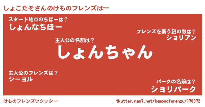 | 2回繰り返すあだ名 | 『とぼとぼ』『しょしょ』『ししょょ』 |