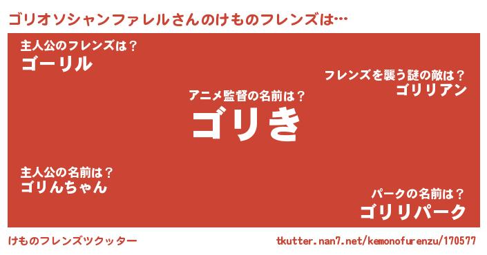 | 萌えアニメ | 主人公(ゴリオソシャンファレル)のあだ名『 ゴリゴリきゅん』 |