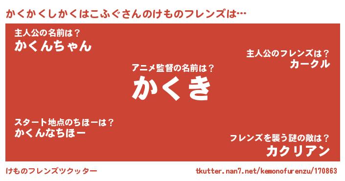 | 萌えアニメ | 主人公(かくかくしかくはこふぐ)のあだ名『 かくかく』 |