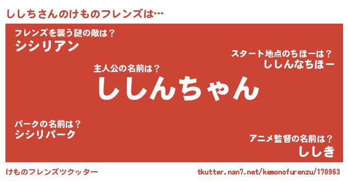 | ヒーロー風カッコイイあだ名 | 『スーパーシシチ』『正義の使者ししち』 |