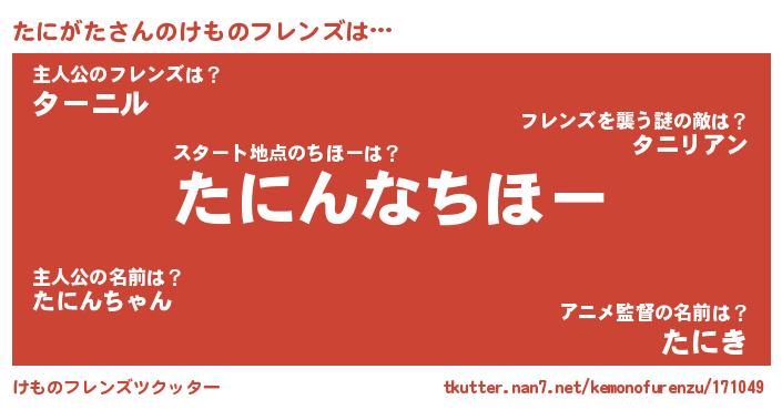 | 2回繰り返すあだ名 | 『たたにに』『げこげこ』『ぬれぬれ』 |