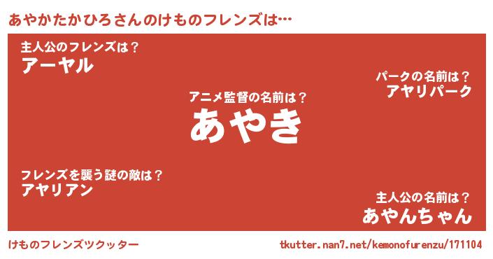 | ヘコむあだ名 | 『あやぷりん』『あやかたかひろ(爆)』 |