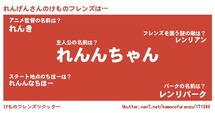| 意味不明あだ名 | 『ペロリンれんげん』『自称れんげん』 |