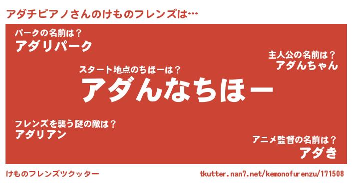 | 意味不明あだ名 | 『住所不定無職アダチピアノ(11歳)』 |