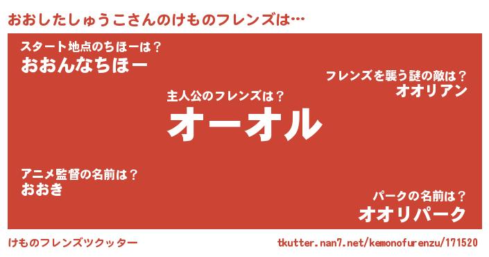 | 2回繰り返すあだ名 | 『げほげほ』『おおおお』『もふもふ』 |