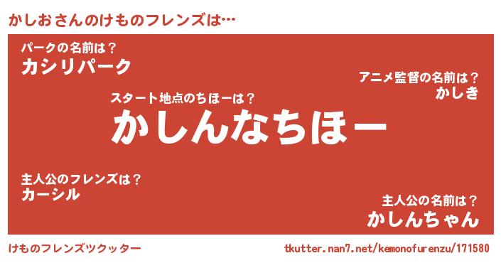 | ピコ太郎風あだ名 | 『ピカ史郎』『カコ四郎』『カシ六郎』 |