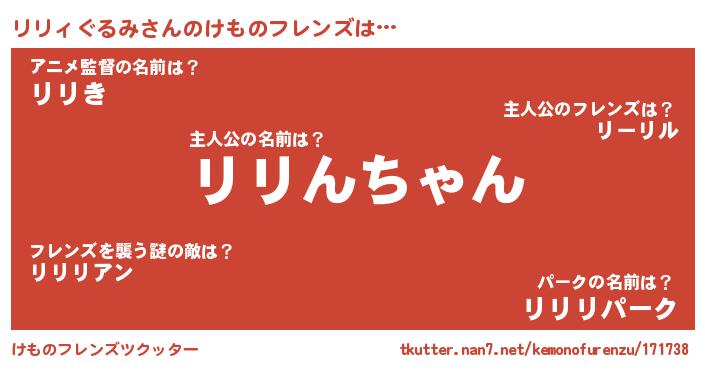 | 意味不明あだ名 | 『ペロリンリリィぐるみ』 |