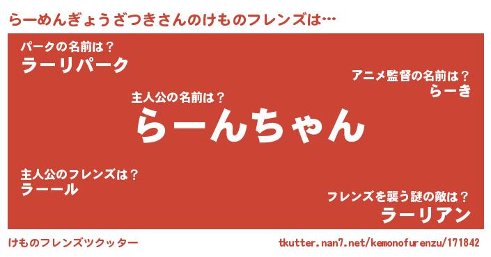 | 男性向けラノベタイトル風あだ名 | 『この素晴らしい世界にらーめんぎょうざつきを!』 |