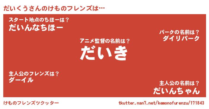 | 意味不明あだ名 | 『とにかく怪しいだいくう』 |