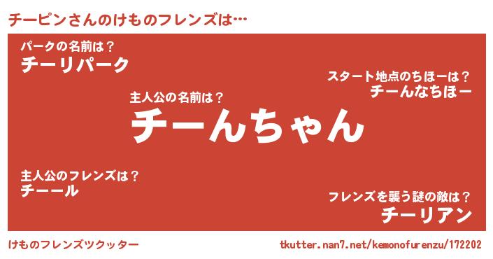 | ヒーロー風カッコイイあだ名 | 『スーパーチーピン』『最強戦士チーピン』 |