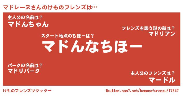 | 意味不明あだ名 | 『マドレーヌフォーエバー』 |