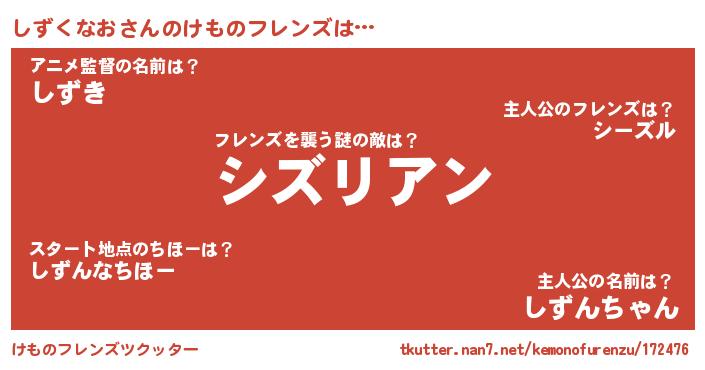 | ポケモン風あだ名 | 『シズキング』『シズゴンZ』 |