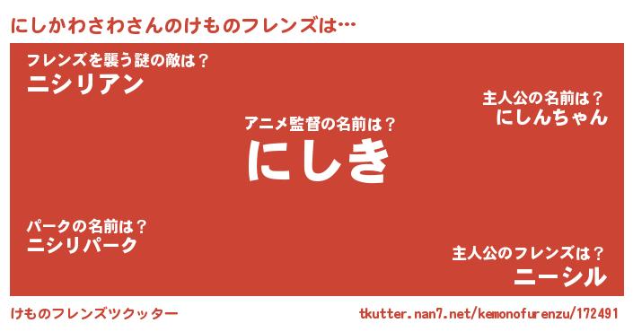 | ポケモン風あだ名 | 『ヒニシカワサワ』『ニックウザ』 |