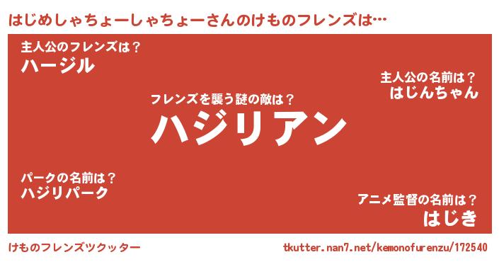 | ことわざ | 三つ子の魂100まで『はじめしゃちょーしゃちょーの魂100まで』 |