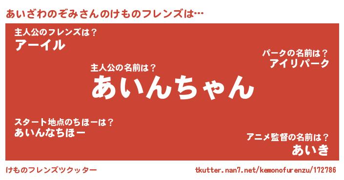 | ヘコむあだ名 | 『あいにー』『あいざわのぞみ(震え声)』 |
