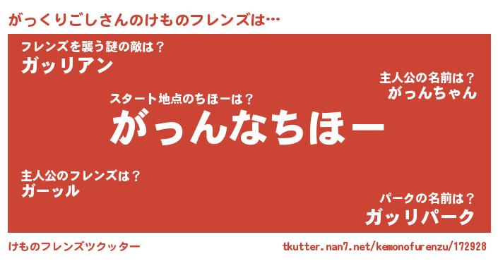 | 2回繰り返すあだ名 | 『わらわら』『ががっっ』『ぷるぷる』 |