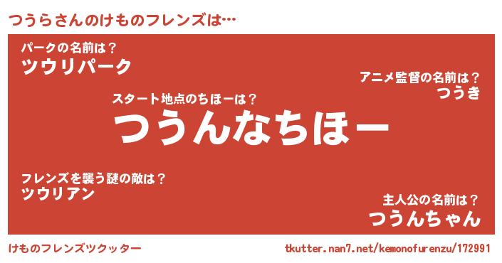 | 2回繰り返すあだ名 | 『つつうう』『しゃなりしゃなり』 |