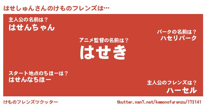 | 2回繰り返すあだ名 | 『わざわざ』『にたにた』『はせはせ』 |