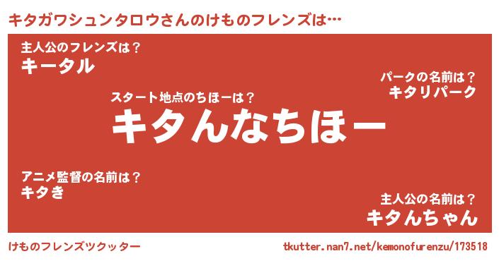 | 男性向けラノベタイトル風あだ名 | 『この素晴らしい世界にキタガワシュンタロウを!』 |