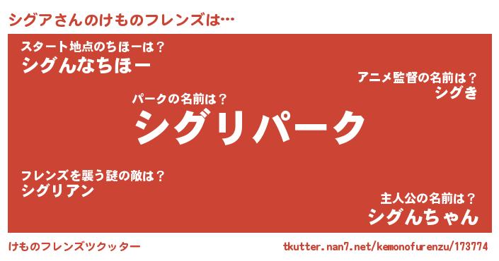 | 意味不明あだ名 | 『自称シグア』『なめこ科シグア属』 |
